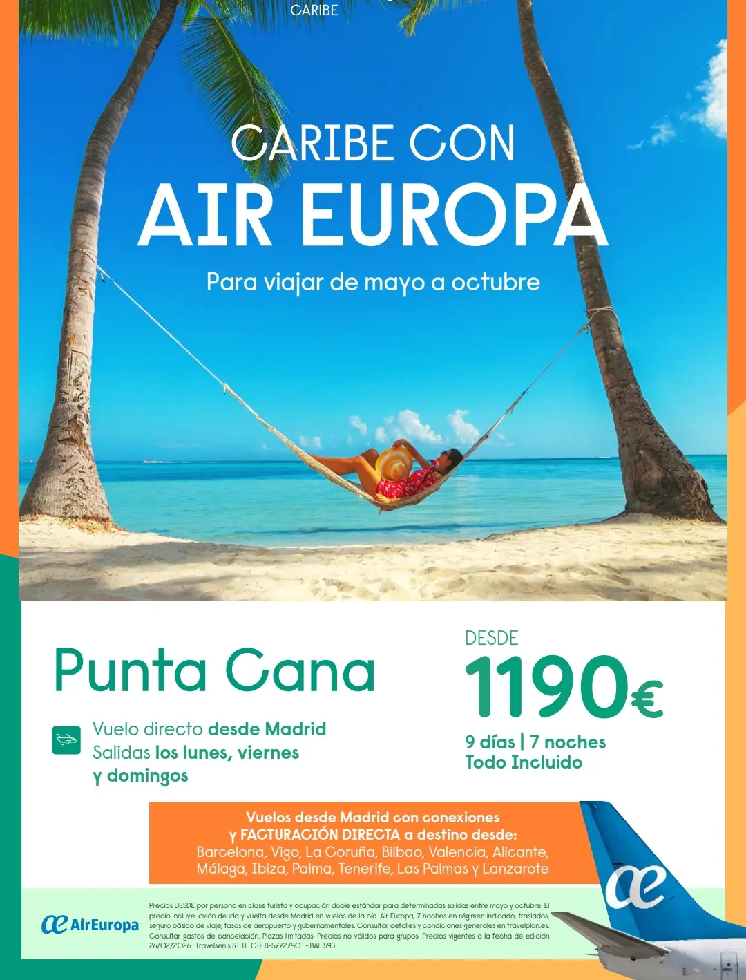 Vuelo directo a Punta Cana desde Madrid con Air Europa